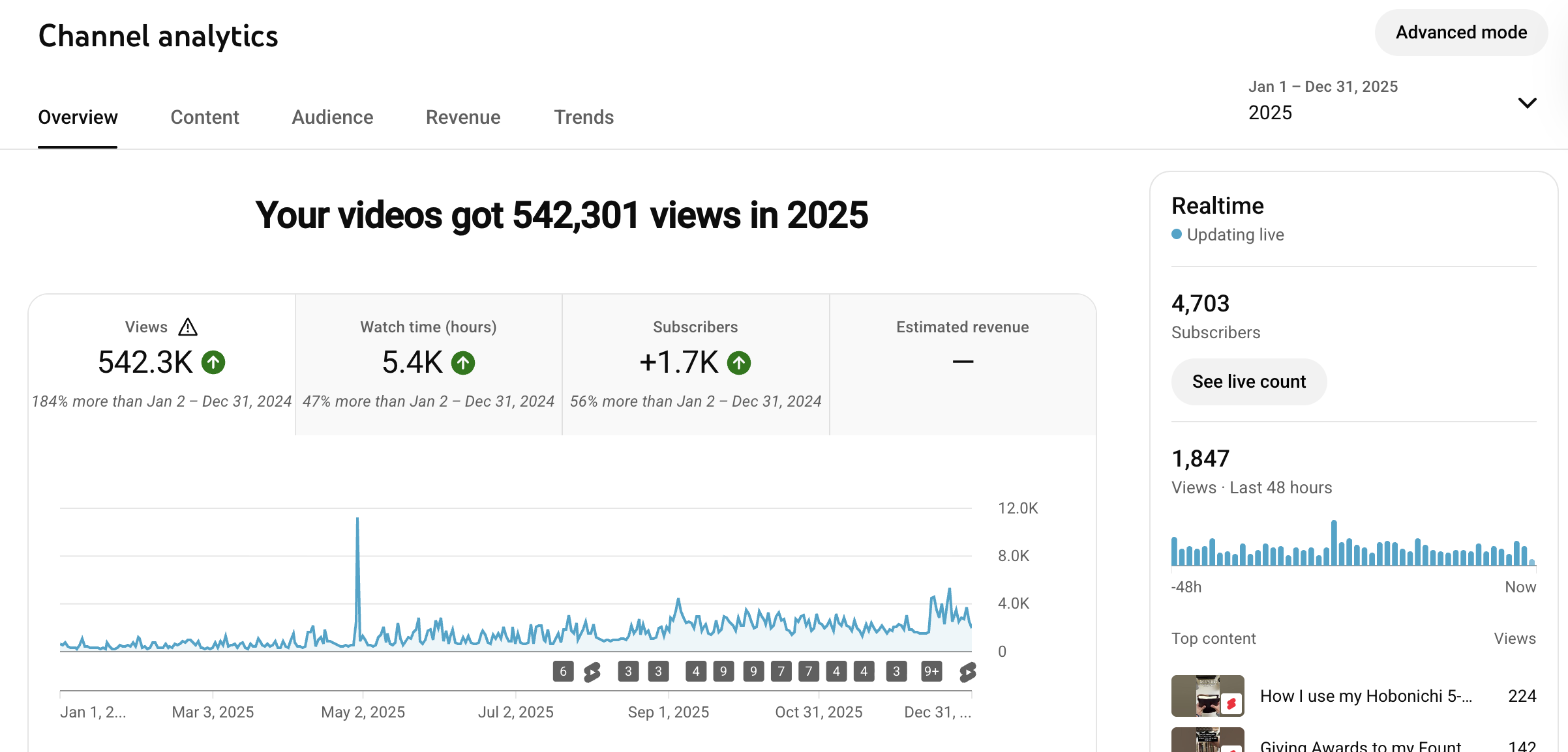 +1.5k Youtube subscibers across 365 days