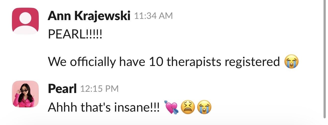 Built a strong warm-lead pipeline, she was able to connect with 8 therapists on a Q+A call and interview 7 therapists, deepening trust and authority.