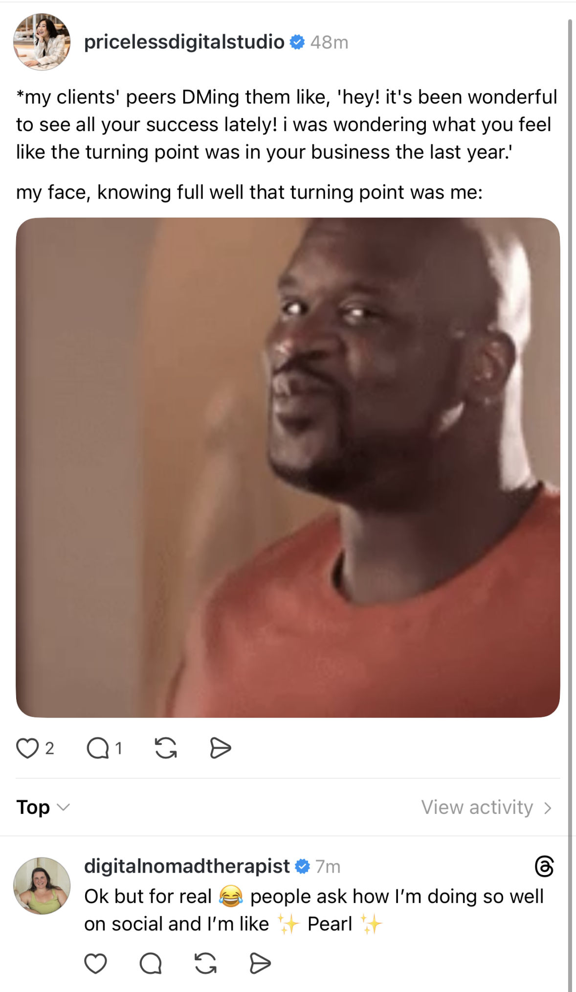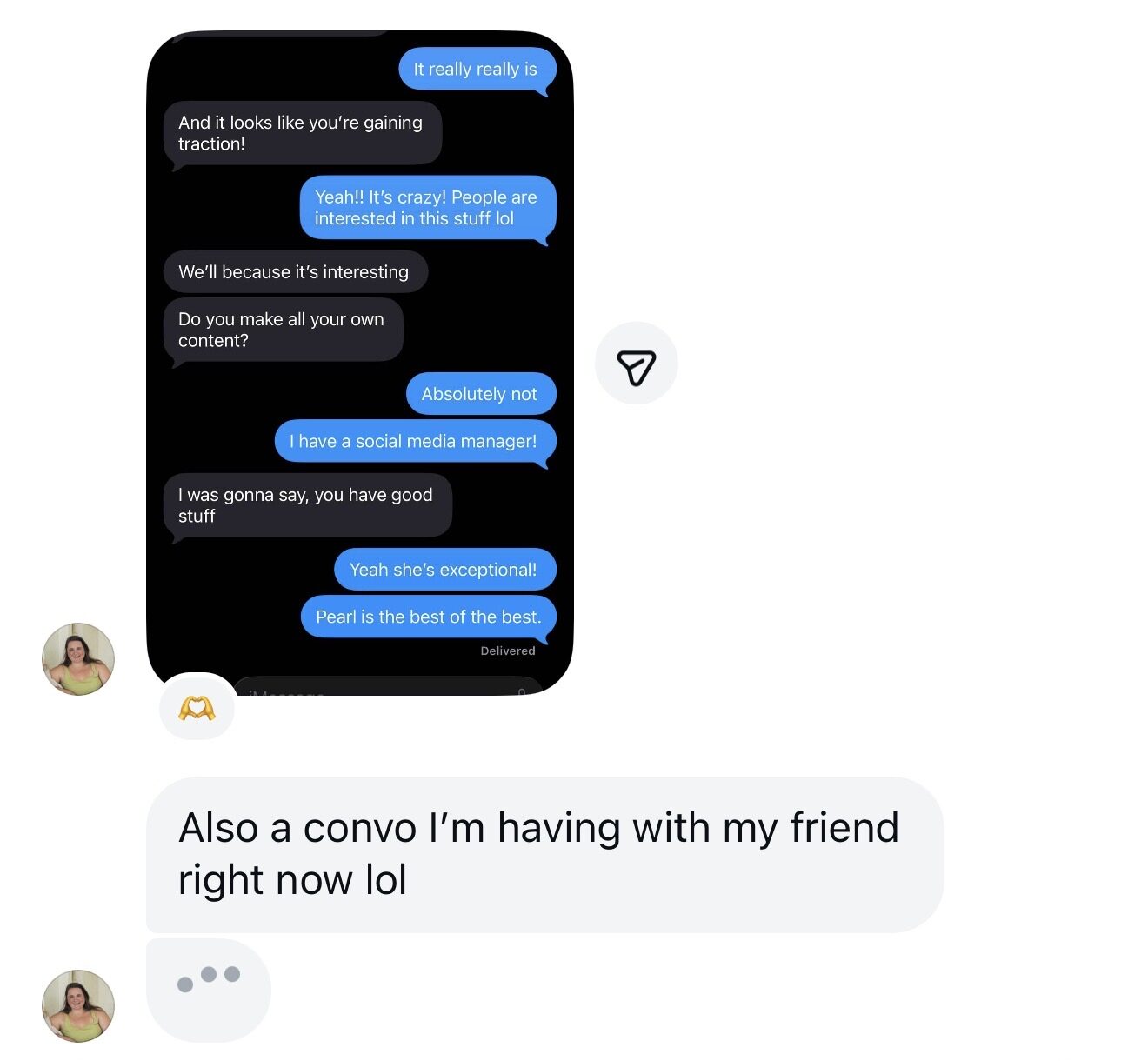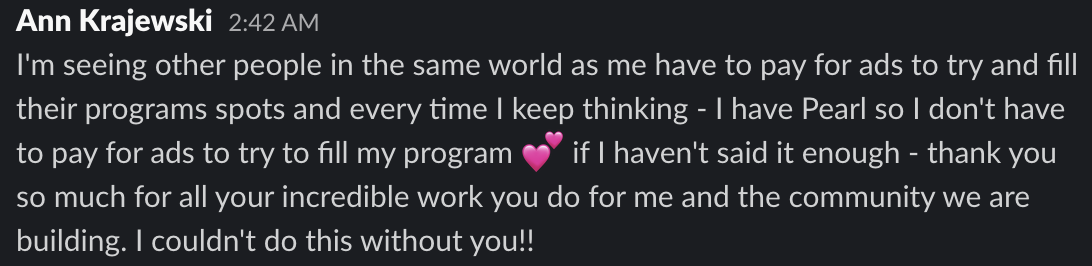 "Pearl was also soooooo helpful in pivoting my instagram to a new business. I felt like I had a partner in social media that helped it feel less overwhelming and scary! As a business owner, I have so much on my plate and so Pearl really helped take care of my instagram in a way that I won't be able to given all the other tasks I need to complete. I got a really robust instagram account that really dove into my branding and business! So many people would tell me how much they love my content. I even had two brand designers tell me how much my brand came through on insta and that they knew it was me right away. This was all Pearl helping make content that was on brand and using my brand assets so creatively! Pearl was also soooooo helpful in pivoting my instagram to a new business. I felt like I had a partner in social media that helped it feel less overwhelming and scary! As a business owner, I have so much on my plate and so Pearl really helped take care of my instagram in a way that I won't be able to given all the other tasks I need to complete."