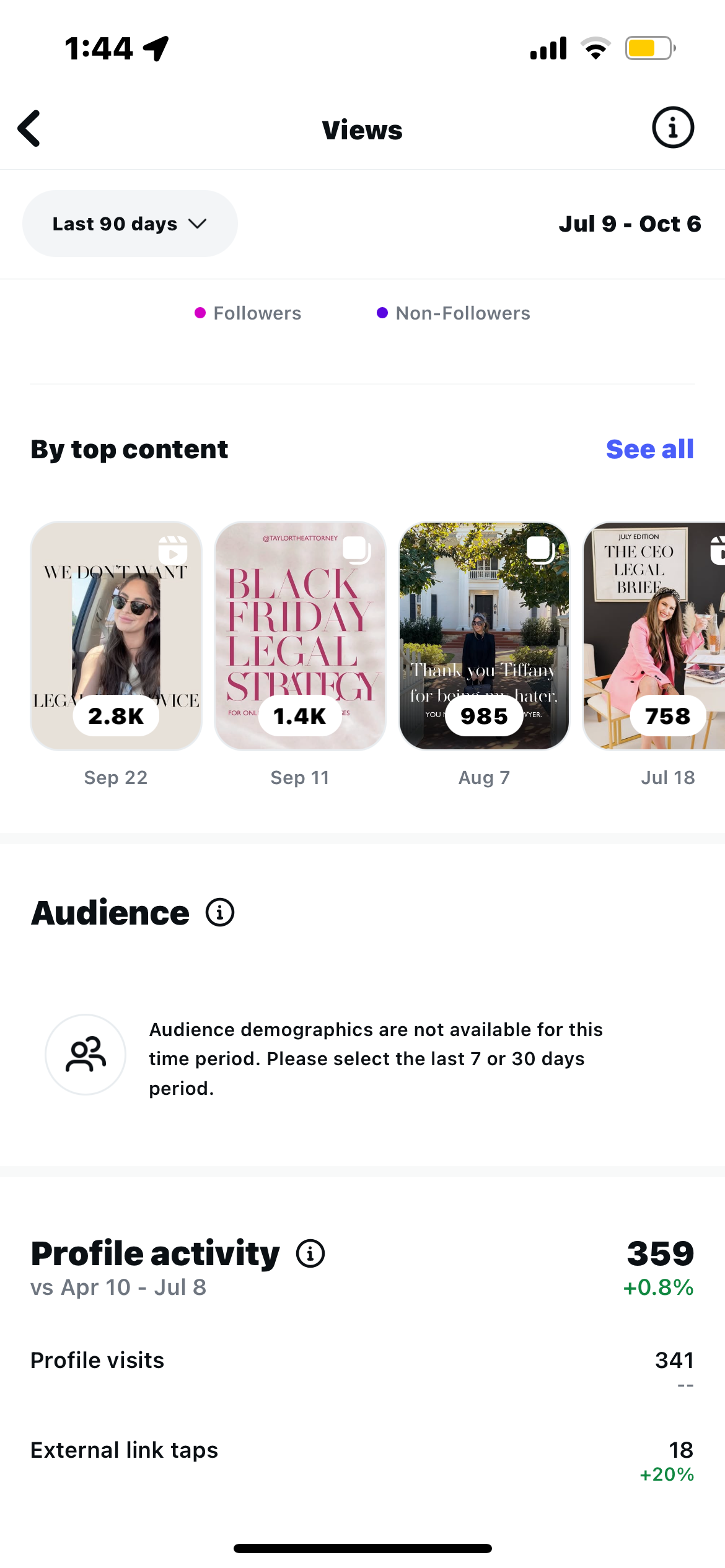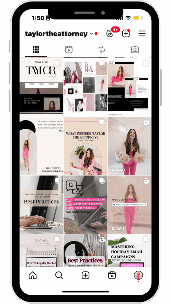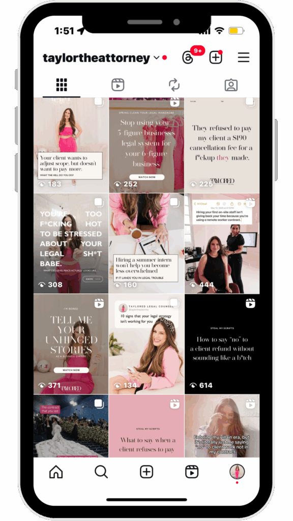 The challenge: Taylor’s legal practice was growing fast, but her time and energy were maxed out. Between client work and scaling her business, she couldn’t keep up with social media. With a nearly dead account, she needed consistent, strategic management to attract leads and show up where her audience was watching.
